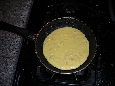 Feeling a little guilty and grossed out from frying up so many hush puppy sponges, I decided to experiment with cooking the rest of the batter like a giant, corny pancake.